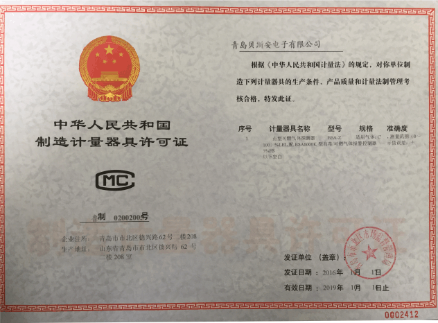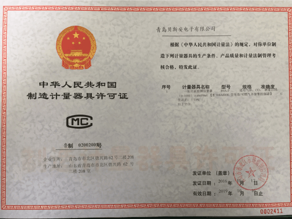 我公司是青島市具有國家質(zhì)量技術(shù)監(jiān)督部門頒發(fā)的計量器具生產(chǎn)許可證的生產(chǎn)企業(yè);獲得國家防爆電氣產(chǎn)品質(zhì)量監(jiān)督檢驗中心頒發(fā)的防爆合格證;獲得國家公安部消防產(chǎn)品合格評定中心頒發(fā)的消防產(chǎn)品形式認可證書。